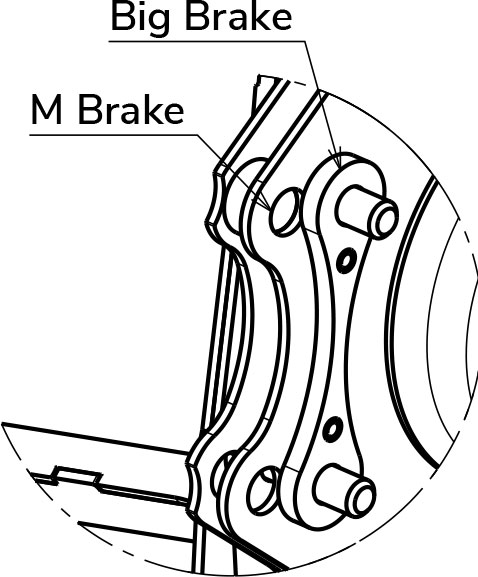 M Brake setup uses the outer hole pattern. Install without the spacer.