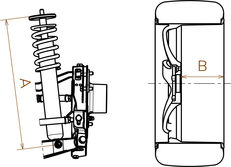 Rear track: 30 mm narrower per side then OEM Strut lenght (A) max: 520 mm