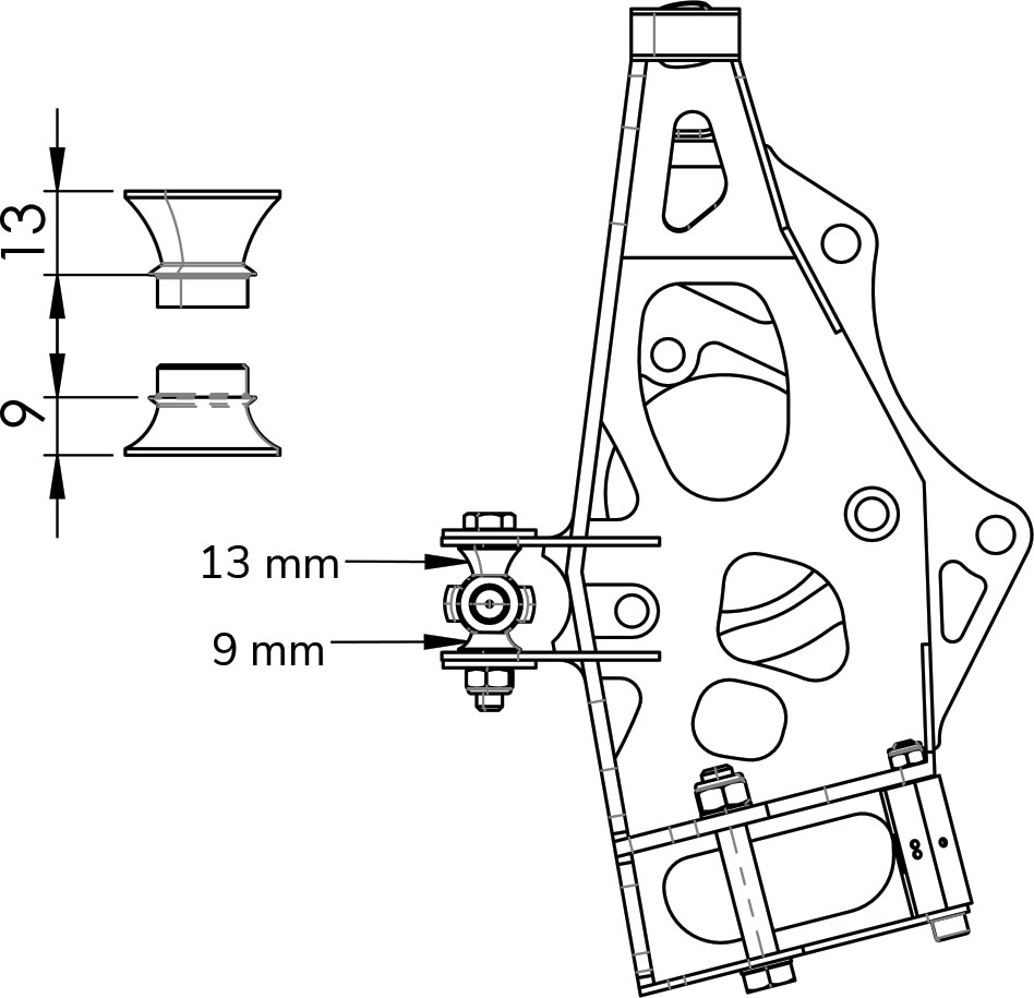 The rod end with spacers has different height spacers. For the Street setup upper spacer must be 13 mm high and lower spacer 9 mm.